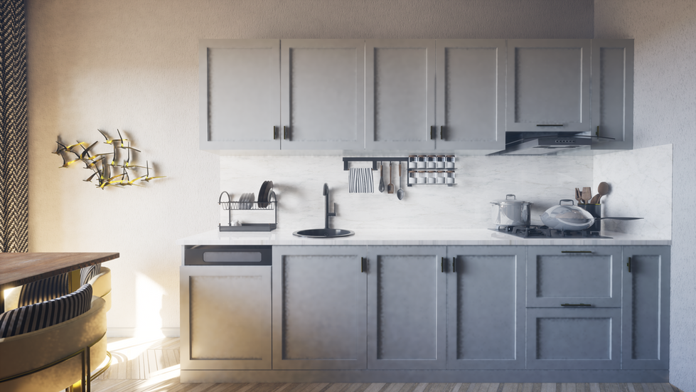 Gün ışığının mekâna hâkim olduğu bu mutfak tasarımı, dar bir plan şemasında ferahlık yaratmak amacıyla kurgulandı. Açık tonlu yüzeyler, sıcak zemin dokusu ve sade hatlı dolaplar ile hem modern hem zamansız bir atmosfer hedeflendi.